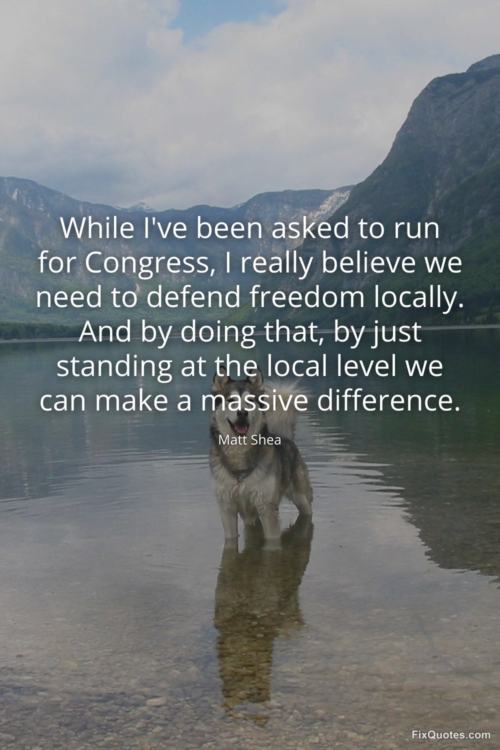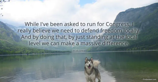 Shea, Matt. (2026, February 9). While I've been asked to run for Congress, I really believe we need to defend freedom locally. And by doing that, by just standing at the local level we can make a massive difference. FixQuotes. https://fixquotes.com/quotes/while-ive-been-asked-to-run-for-congress-i-really-185029/