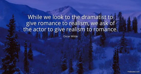 Wilde, Oscar. (2026, January 17). While we look to the dramatist to give romance to realism, we ask of the actor to give realism to romance. FixQuotes. https://fixquotes.com/quotes/while-we-look-to-the-dramatist-to-give-romance-to-26981/