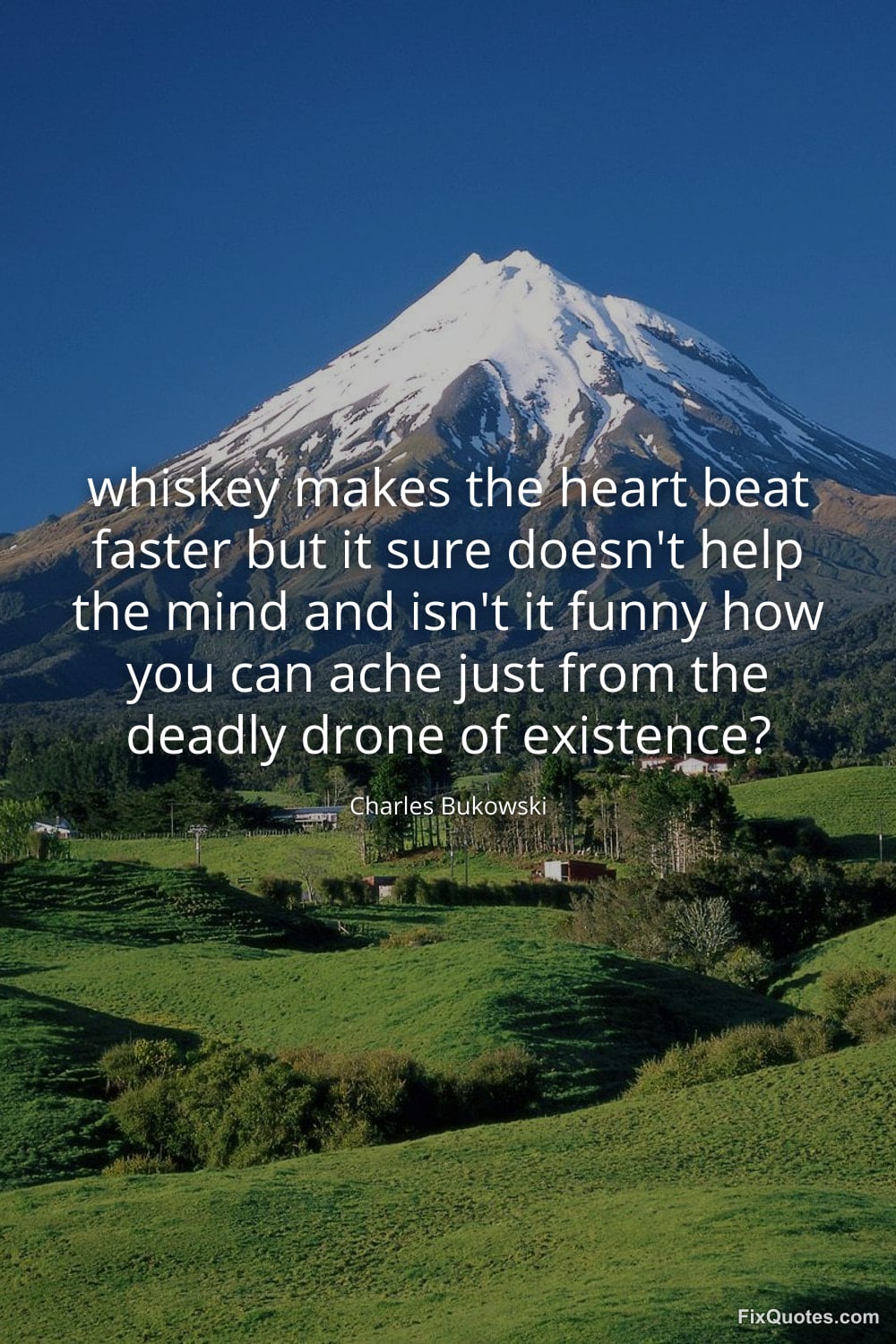 Bukowski, Charles. "whiskey makes the heart beat faster but it sure doesn't help the mind and isn't it funny how you can ache just from the deadly drone of existence?" FixQuotes. February 10, 2026. https://fixquotes.com/quotes/whiskey-makes-the-heart-beat-faster-but-it-sure-185253/.