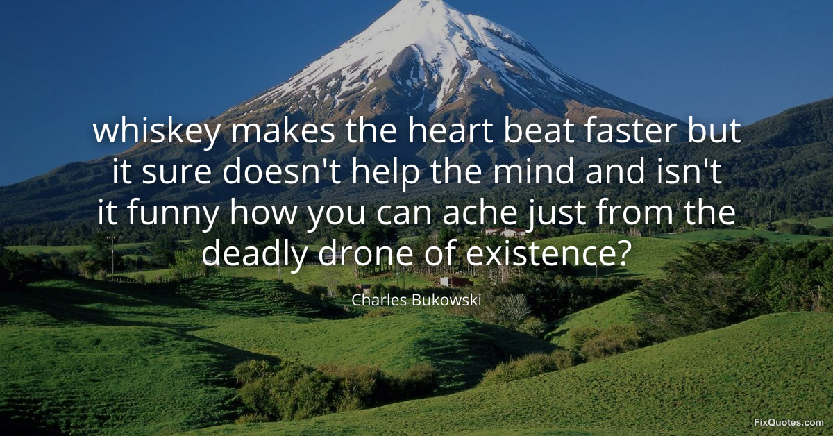 Bukowski, Charles. (2026, February 10). whiskey makes the heart beat faster but it sure doesn't help the mind and isn't it funny how you can ache just from the deadly drone of existence? FixQuotes. https://fixquotes.com/quotes/whiskey-makes-the-heart-beat-faster-but-it-sure-185253/
