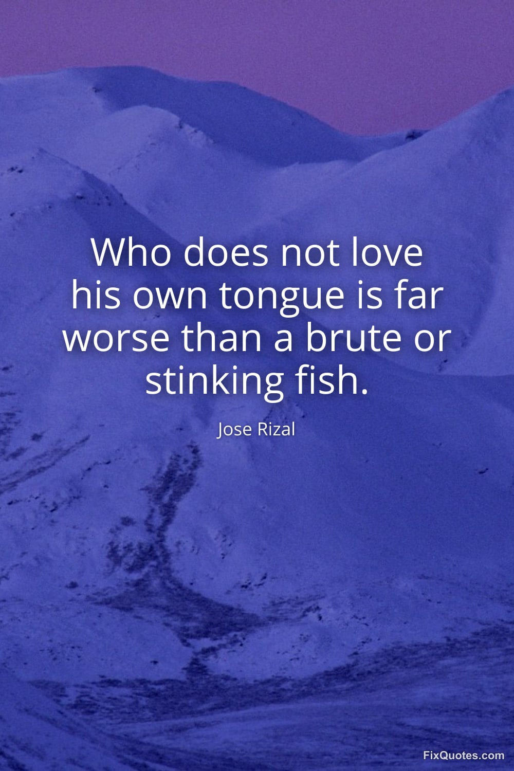 Rizal, Jose. "Who does not love his own tongue is far worse than a brute or stinking fish." FixQuotes. February 10, 2026. https://fixquotes.com/quotes/who-does-not-love-his-own-tongue-is-far-worse-185077/.