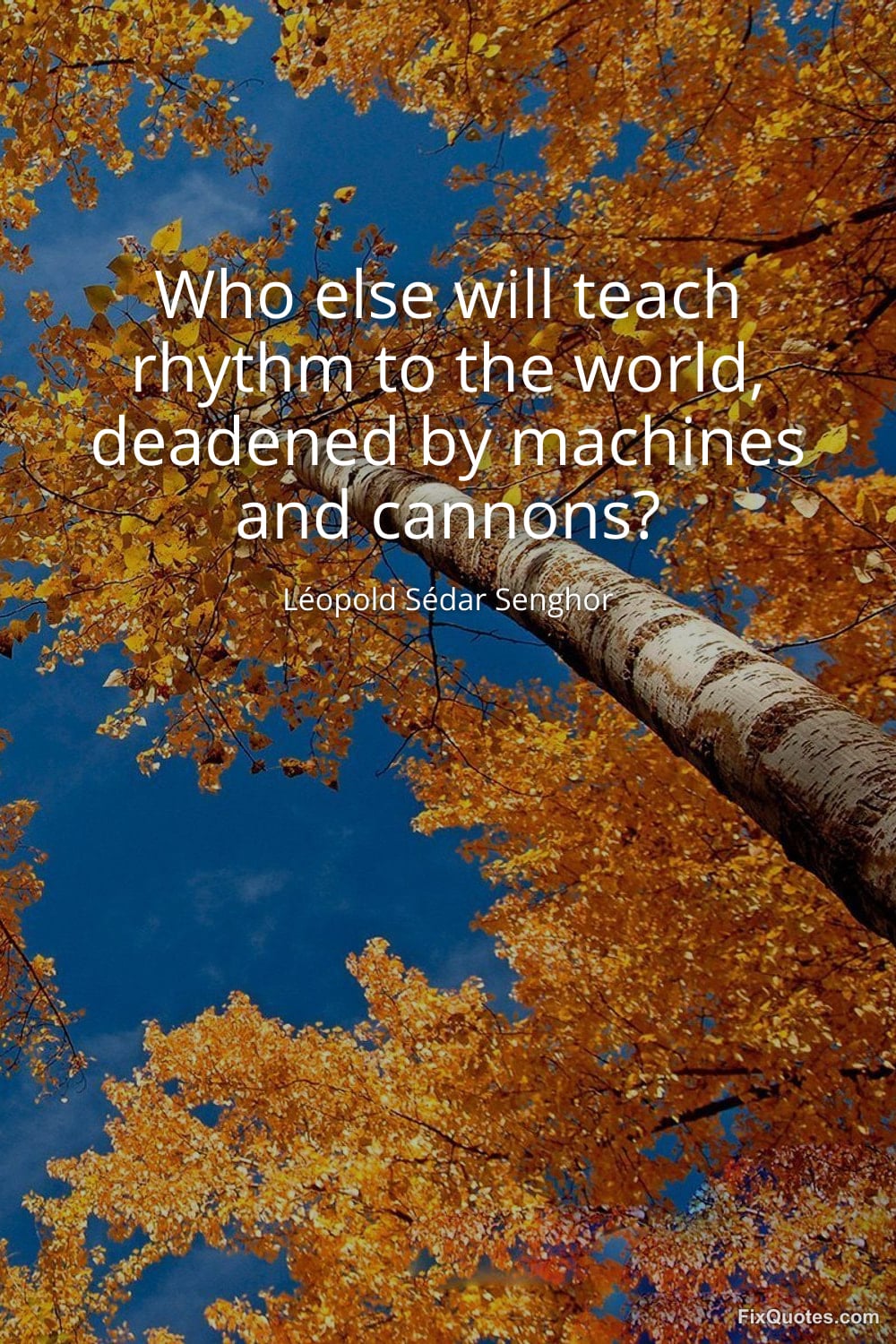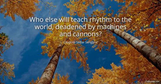 Senghor, Léopold Sédar. "Who else will teach rhythm to the world, deadened by machines and cannons?" FixQuotes. February 16, 2026. https://fixquotes.com/quotes/who-else-will-teach-rhythm-to-the-world-deadened-185497/.