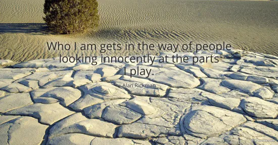 Rickman, Alan. "Who I am gets in the way of people looking innocently at the parts I play." FixQuotes. January 17, 2026. https://fixquotes.com/quotes/who-i-am-gets-in-the-way-of-people-looking-63401/.