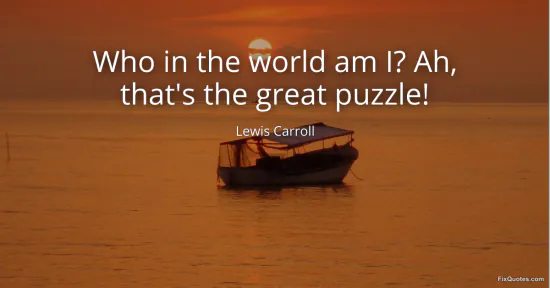"Who in the world am I? Ah, that's the great puzzle!" FixQuotes, 17 Feb. 2026, https://fixquotes.com/quotes/who-in-the-world-am-i-ah-thats-the-great-puzzle-8357/. Accessed 22 Feb. 2026.