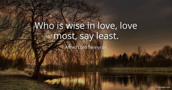 Tennyson, Alfred Lord. (2026, January 18). Who is wise in love, love most, say least. FixQuotes. https://fixquotes.com/quotes/who-is-wise-in-love-love-most-say-least-3661/