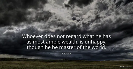 Epictetus. "Whoever does not regard what he has as most ample wealth, is unhappy, though he be master of the world." FixQuotes. January 18, 2026. https://fixquotes.com/quotes/whoever-does-not-regard-what-he-has-as-most-ample-14225/.