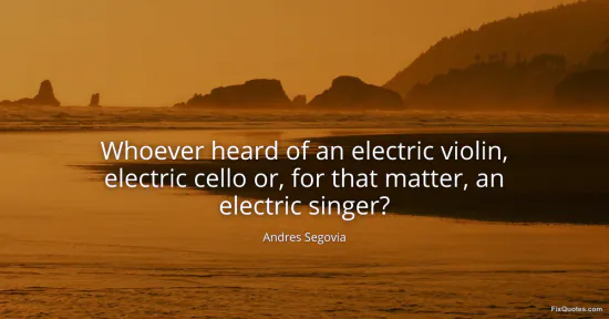 Segovia, Andres. "Whoever heard of an electric violin, electric cello or, for that matter, an electric singer?" FixQuotes. January 17, 2026. https://fixquotes.com/quotes/whoever-heard-of-an-electric-violin-electric-38227/.