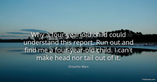 Marx, Groucho. (2026, January 18). Why a four-year-old child could understand this report. Run out and find me a four-year-old child. I can't make head nor tail out of it. FixQuotes. https://fixquotes.com/quotes/why-a-four-year-old-child-could-understand-this-7448/