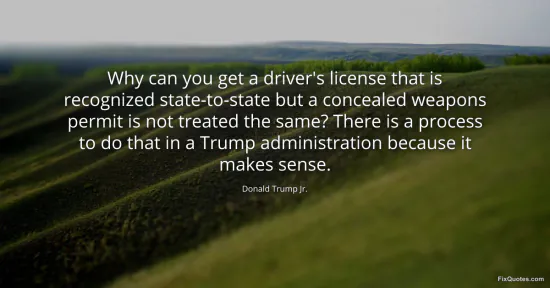 Jr., Donald Trump. (2026, January 15). Why can you get a driver's license that is recognized state-to-state but a concealed weapons permit is not treated the same? There is a process to do that in a Trump administration because it makes sense. FixQuotes. https://fixquotes.com/quotes/why-can-you-get-a-drivers-license-that-is-173271/