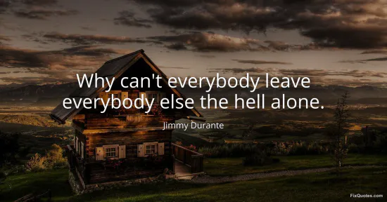 The phrasing is doing most of the heavy lifting. “Why can’t” frames intrusion as a habit so ingrained it needs explaining; “everybody” twice over turns the problem into a mass condition, not a few bad actors. Then there’s “the hell,” the little flare of profanity that signals this isn’t genteel disagreement. It’s emotional fatigue. Durante’s comedy often traded in the gap between big-city hustle and human-scale decency, and this feels like the distilled complaint of someone who’s watched modern life get louder, nosier, more officious.