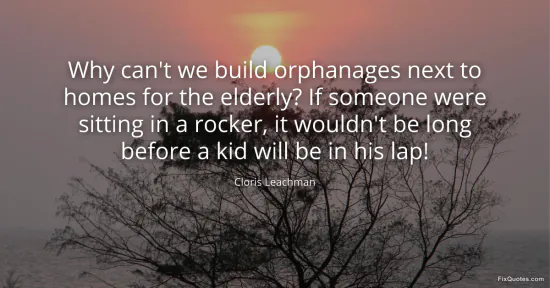 Leachman, Cloris. (2026, February 17). Why can't we build orphanages next to homes for the elderly? If someone were sitting in a rocker, it wouldn't be long before a kid will be in his lap! FixQuotes. https://fixquotes.com/quotes/why-cant-we-build-orphanages-next-to-homes-for-158019/