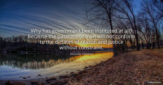 "Why has government been instituted at all? Because the passions of man will not conform to the dictates of reason and justice without constraint"