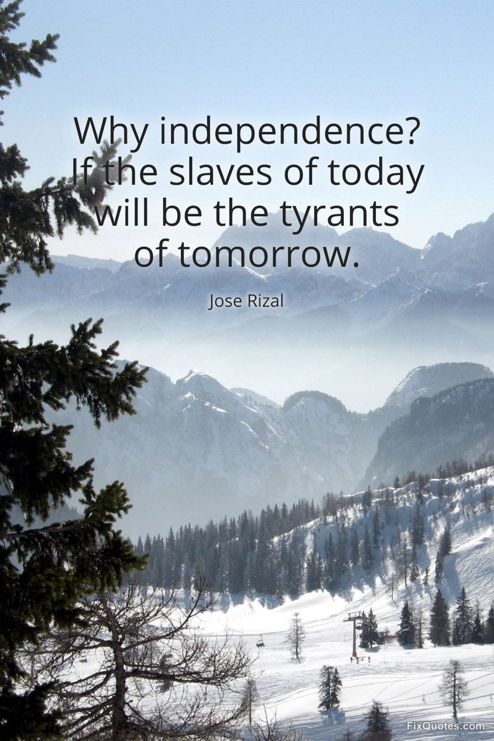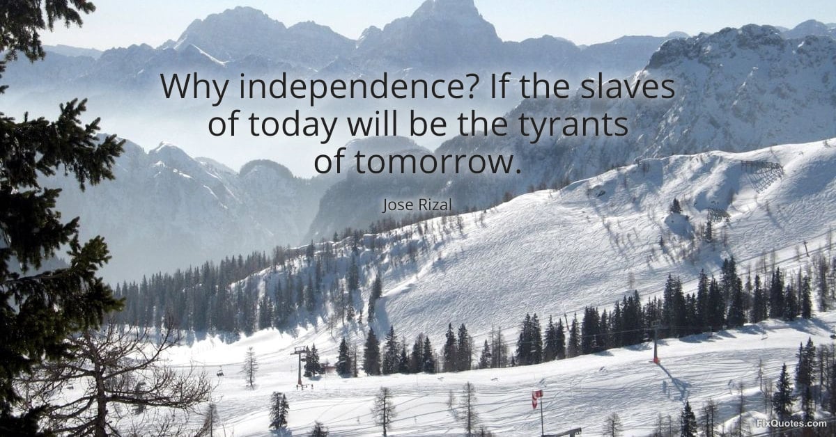 Rizal, Jose. (2026, February 10). Why independence? If the slaves of today will be the tyrants of tomorrow. FixQuotes. https://fixquotes.com/quotes/why-independence-if-the-slaves-of-today-will-be-185071/