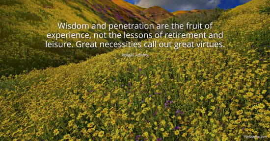Adams, Abigail. (2026, January 18). Wisdom and penetration are the fruit of experience, not the lessons of retirement and leisure. Great necessities call out great virtues. FixQuotes. https://fixquotes.com/quotes/wisdom-and-penetration-are-the-fruit-of-19313/