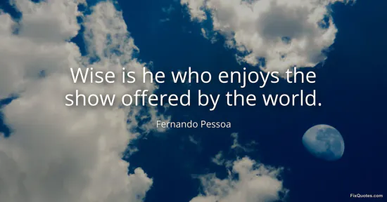 Pessoa, Fernando. (2026, January 14). Wise is he who enjoys the show offered by the world. FixQuotes. https://fixquotes.com/quotes/wise-is-he-who-enjoys-the-show-offered-by-the-94288/