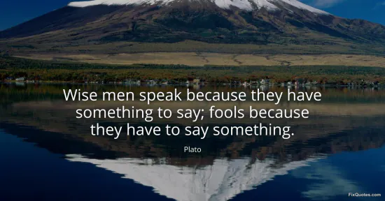 "Wise men speak because they have something to say; fools because they have to say something." FixQuotes, 25 Feb. 2026, https://fixquotes.com/quotes/wise-men-speak-because-they-have-something-to-say-29337/. Accessed 4 Mar. 2026.
