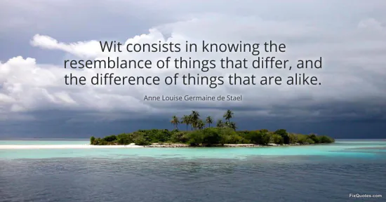 Stael, Anne Louise Germaine de. "Wit consists in knowing the resemblance of things that differ, and the difference of things that are alike." FixQuotes. January 15, 2026. https://fixquotes.com/quotes/wit-consists-in-knowing-the-resemblance-of-things-149784/.