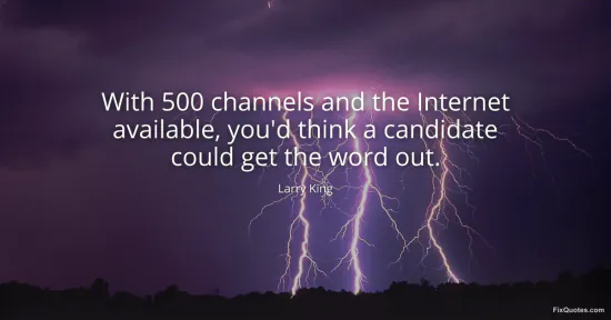King, Larry. "With 500 channels and the Internet available, you'd think a candidate could get the word out." FixQuotes. January 16, 2026. https://fixquotes.com/quotes/with-500-channels-and-the-internet-available-youd-104240/.