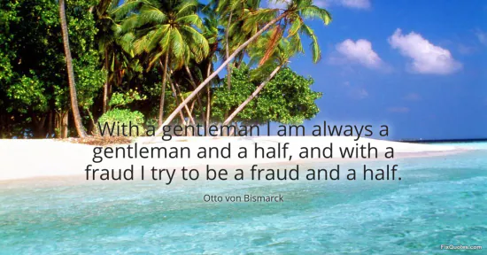 Bismarck, Otto von. "With a gentleman I am always a gentleman and a half, and with a fraud I try to be a fraud and a half." FixQuotes. January 15, 2026. https://fixquotes.com/quotes/with-a-gentleman-i-am-always-a-gentleman-and-a-93791/.