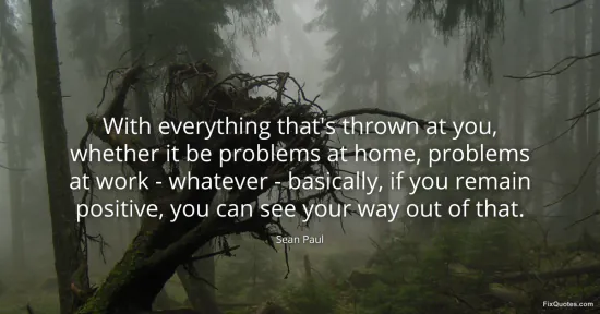Paul, Sean. (2026, January 11). With everything that's thrown at you, whether it be problems at home, problems at work - whatever - basically, if you remain positive, you can see your way out of that. FixQuotes. https://fixquotes.com/quotes/with-everything-thats-thrown-at-you-whether-it-be-183875/