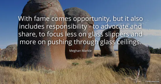 Markle, Meghan. (2026, January 15). With fame comes opportunity, but it also includes responsibility - to advocate and share, to focus less on glass slippers and more on pushing through glass ceilings. FixQuotes. https://fixquotes.com/quotes/with-fame-comes-opportunity-but-it-also-includes-171800/