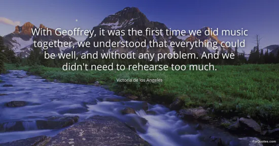 Angeles, Victoria de los. "With Geoffrey, it was the first time we did music together, we understood that everything could be well, and without any problem. And we didn't need to rehearse too much." FixQuotes. January 16, 2026. https://fixquotes.com/quotes/with-geoffrey-it-was-the-first-time-we-did-music-98001/.