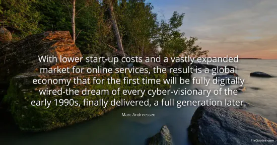 Andreessen, Marc. (2026, January 17). With lower start-up costs and a vastly expanded market for online services, the result is a global economy that for the first time will be fully digitally wired-the dream of every cyber-visionary of the early 1990s, finally delivered, a full generation later. FixQuotes. https://fixquotes.com/quotes/with-lower-start-up-costs-and-a-vastly-expanded-71067/