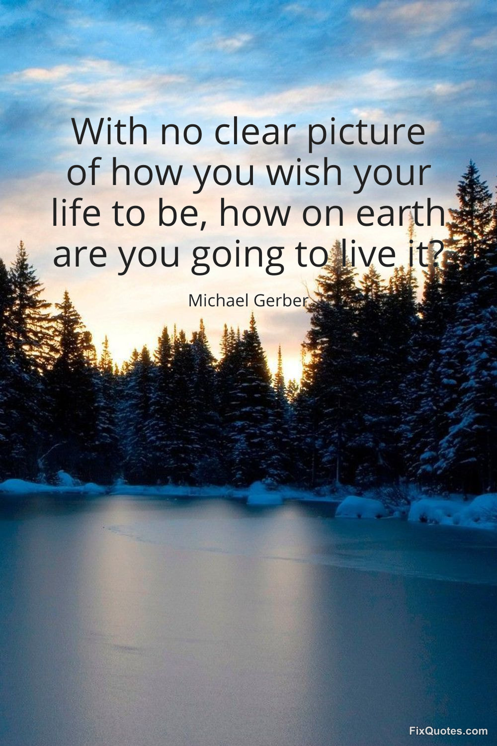 Gerber, Michael. (2026, February 5). With no clear picture of how you wish your life to be, how on earth are you going to live it? FixQuotes. https://fixquotes.com/quotes/with-no-clear-picture-of-how-you-wish-your-life-184945/