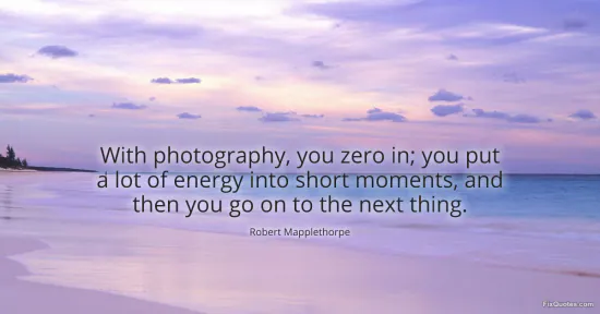 Mapplethorpe, Robert. "With photography, you zero in; you put a lot of energy into short moments, and then you go on to the next thing." FixQuotes. January 18, 2026. https://fixquotes.com/quotes/with-photography-you-zero-in-you-put-a-lot-of-11695/.