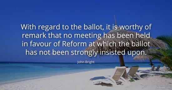 Bright, John. (2026, January 15). With regard to the ballot, it is worthy of remark that no meeting has been held in favour of Reform at which the ballot has not been strongly insisted upon. FixQuotes. https://fixquotes.com/quotes/with-regard-to-the-ballot-it-is-worthy-of-remark-147154/