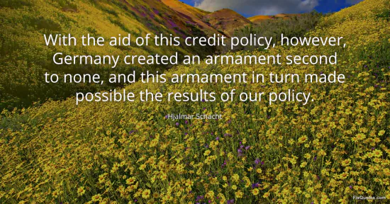 Schacht, Hjalmar. (2026, January 15). With the aid of this credit policy, however, Germany created an armament second to none, and this armament in turn made possible the results of our policy. FixQuotes. https://fixquotes.com/quotes/with-the-aid-of-this-credit-policy-however-75104/