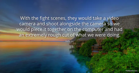 Hu, Kelly. (2026, January 15). With the fight scenes, they would take a video camera and shoot alongside the camera so we would piece it together on the computer and had an extremely rough cut of what we were doing. FixQuotes. https://fixquotes.com/quotes/with-the-fight-scenes-they-would-take-a-video-162261/