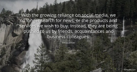 Qualman, Erik. (2026, February 18). With the growing reliance on social media, we no longer search for news, or the products and services we wish to buy. Instead, they are being pushed to us by friends, acquaintances and business colleagues. FixQuotes. https://fixquotes.com/quotes/with-the-growing-reliance-on-social-media-we-no-73087/