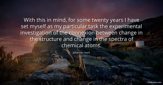 Stark, Johannes. "With this in mind, for some twenty years I have set myself as my particular task the experimental investigation of the connexion between change in the structure and change in the spectra of chemical atoms." FixQuotes. January 17, 2026. https://fixquotes.com/quotes/with-this-in-mind-for-some-twenty-years-i-have-69834/.