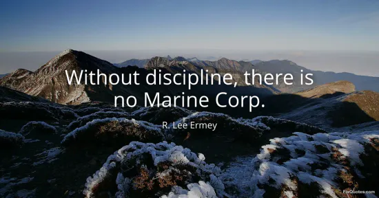 Discipline is doing the unglamorous thing on time, every time, even when nobody is watching. R. Lee Ermey’s line lands like a barked order because it’s meant to: it reduces the mystique of the Marine Corps to one blunt operating principle, stripping away recruiting-poster heroics in favor of the machinery that actually produces a Marine.