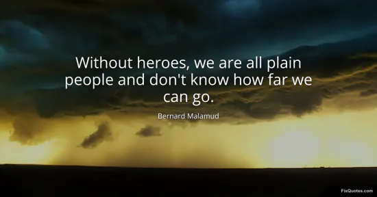 Malamud, Bernard. "Without heroes, we are all plain people and don't know how far we can go." FixQuotes. January 15, 2026. https://fixquotes.com/quotes/without-heroes-we-are-all-plain-people-and-dont-109624/.