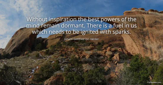 Herder, Johann Gottfried von. "Without inspiration the best powers of the mind remain dormant. There is a fuel in us which needs to be ignited with sparks." FixQuotes. January 17, 2026. https://fixquotes.com/quotes/without-inspiration-the-best-powers-of-the-mind-32541/.