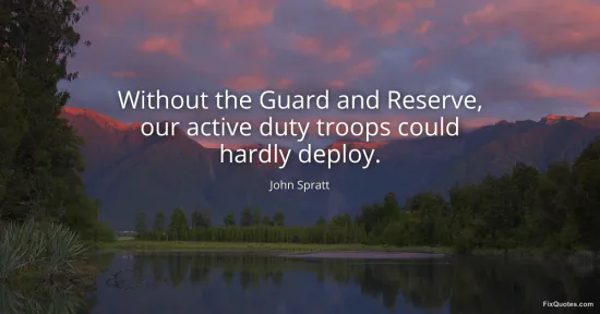 Spratt, John. (2026, January 15). Without the Guard and Reserve, our active duty troops could hardly deploy. FixQuotes. https://fixquotes.com/quotes/without-the-guard-and-reserve-our-active-duty-164038/