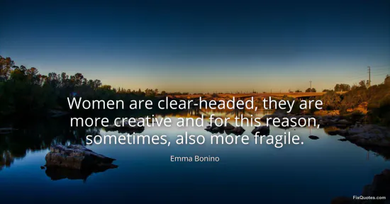 Bonino, Emma. (2026, January 18). Women are clear-headed, they are more creative and for this reason, sometimes, also more fragile. FixQuotes. https://fixquotes.com/quotes/women-are-clear-headed-they-are-more-creative-and-16130/