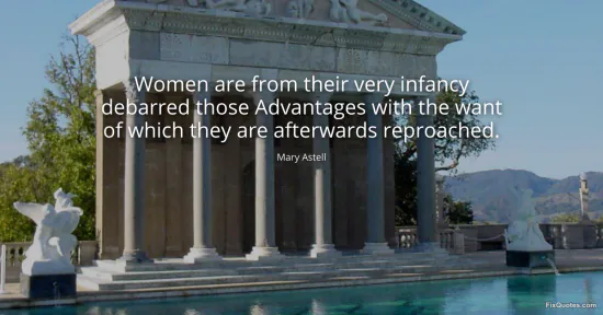 Astell, Mary. "Women are from their very infancy debarred those Advantages with the want of which they are afterwards reproached." FixQuotes. January 15, 2026. https://fixquotes.com/quotes/women-are-from-their-very-infancy-debarred-those-88706/.