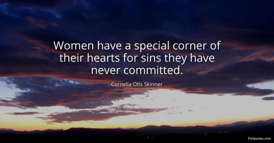 Skinner, Cornelia Otis. (2026, January 15). Women have a special corner of their hearts for sins they have never committed. FixQuotes. https://fixquotes.com/quotes/women-have-a-special-corner-of-their-hearts-for-167229/