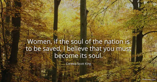 King, Coretta Scott. (2026, January 15). Women, if the soul of the nation is to be saved, I believe that you must become its soul. FixQuotes. https://fixquotes.com/quotes/women-if-the-soul-of-the-nation-is-to-be-saved-i-52537/