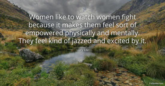 Liu, Lucy. (2026, January 15). Women like to watch women fight because it makes them feel sort of empowered physically and mentally. They feel kind of jazzed and excited by it. FixQuotes. https://fixquotes.com/quotes/women-like-to-watch-women-fight-because-it-makes-160479/
