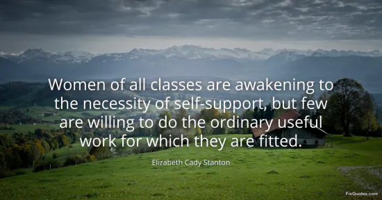 Stanton, Elizabeth Cady. "Women of all classes are awakening to the necessity of self-support, but few are willing to do the ordinary useful work for which they are fitted." FixQuotes. January 15, 2026. https://fixquotes.com/quotes/women-of-all-classes-are-awakening-to-the-150576/.