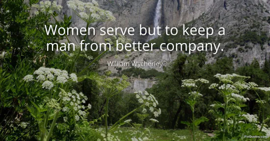 Wycherley, William. "Women serve but to keep a man from better company." FixQuotes. January 15, 2026. https://fixquotes.com/quotes/women-serve-but-to-keep-a-man-from-better-company-27653/.