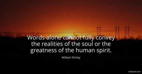 Shirley, William. "Words alone cannot fully convey the realities of the soul or the greatness of the human spirit." FixQuotes. January 17, 2026. https://fixquotes.com/quotes/words-alone-cannot-fully-convey-the-realities-of-66558/.