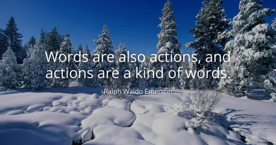 Evidence: Ralph Waldo Emerson. Homer's words are as costly and admirable to Homer as Agamemnon's victories are to Agamemnon ... Words are also actions , and actions are a kind of words . The sign and credentials of the poet are , that he ... Other candidates (1) Ralph Waldo Emerson (Ralph Waldo Emerson) compilation40.0% le and more cowardly in actions of cunning actions that steal and lie actions th |
