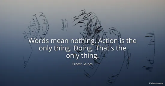 Gaines, Ernest. (2026, February 12). Words mean nothing. Action is the only thing. Doing. That's the only thing. FixQuotes. https://fixquotes.com/quotes/words-mean-nothing-action-is-the-only-thing-doing-115165/