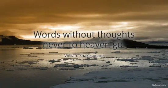 | Source | Hamlet, Act 3, Scene 3 — line: "Words without thoughts never to heaven go." William Shakespeare. (standard text of Hamlet) |
