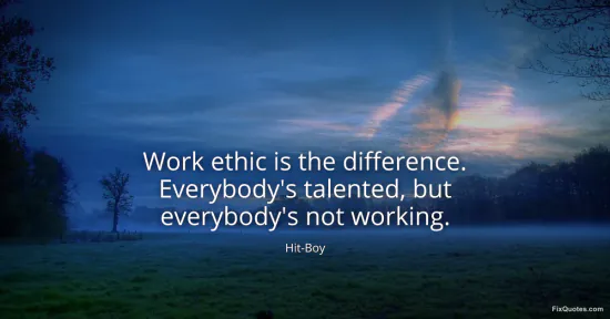 Hit-Boy. "Work ethic is the difference. Everybody's talented, but everybody's not working." FixQuotes. February 16, 2026. https://fixquotes.com/quotes/work-ethic-is-the-difference-everybodys-talented-184640/.